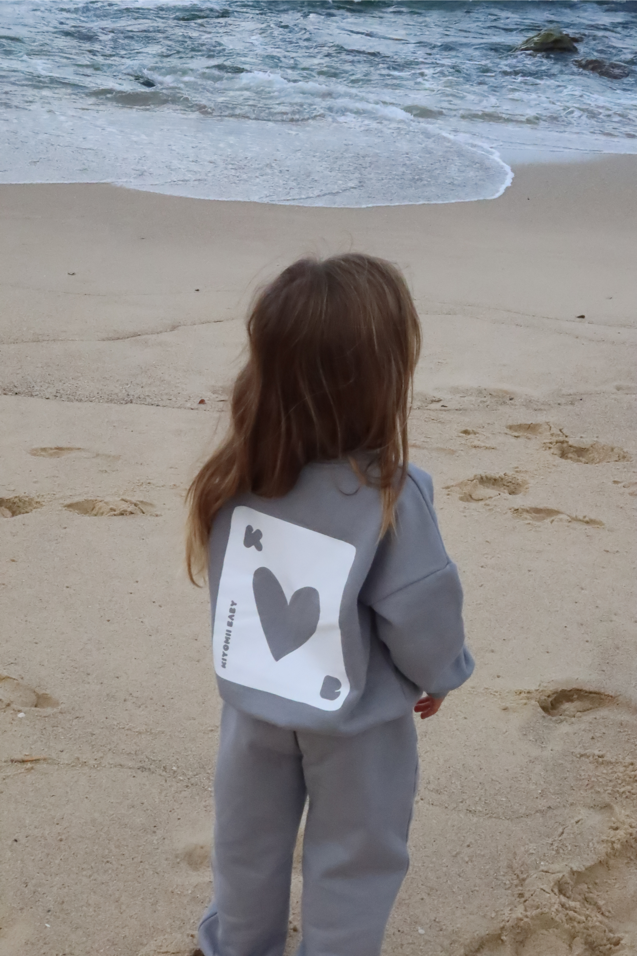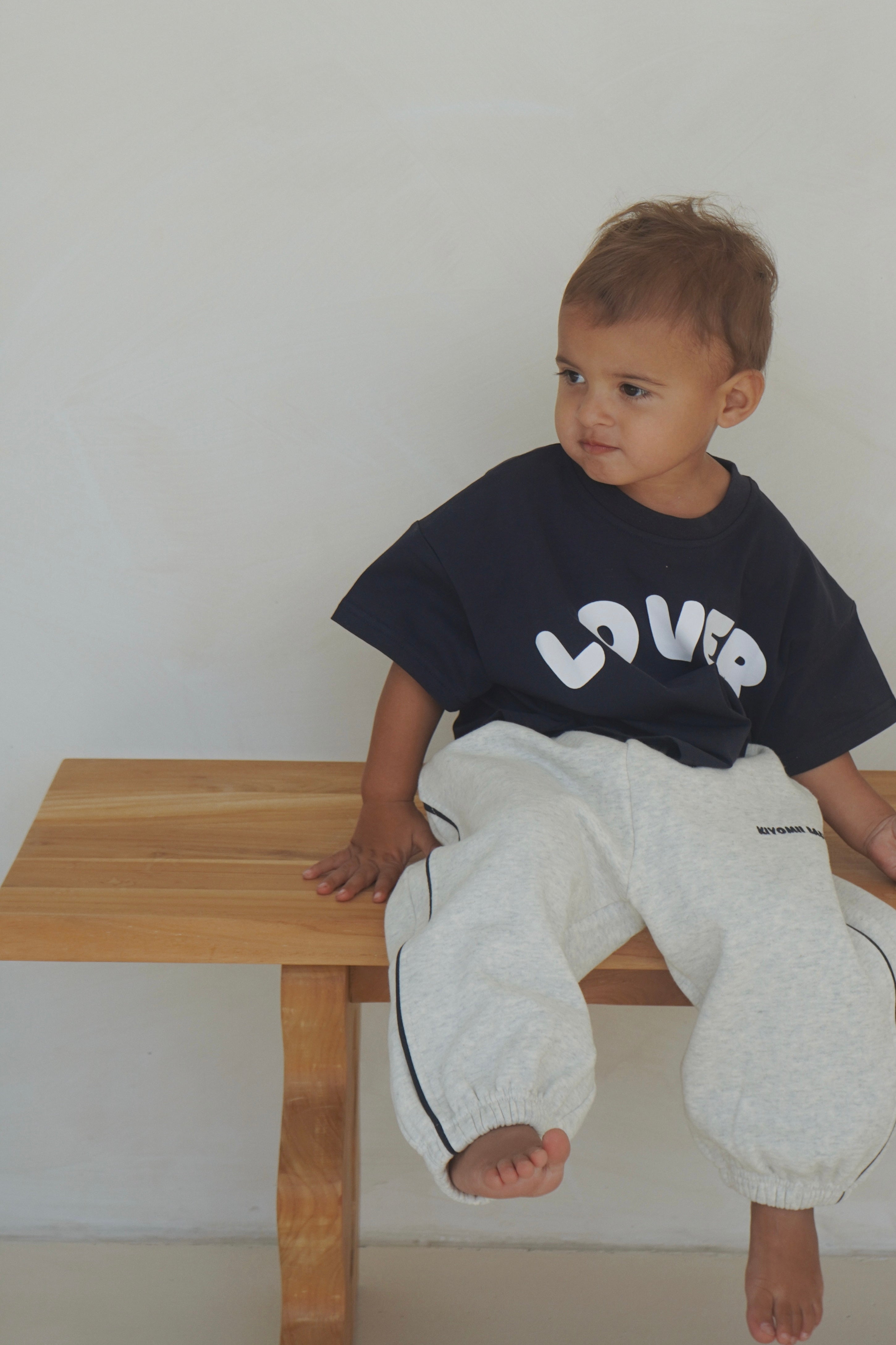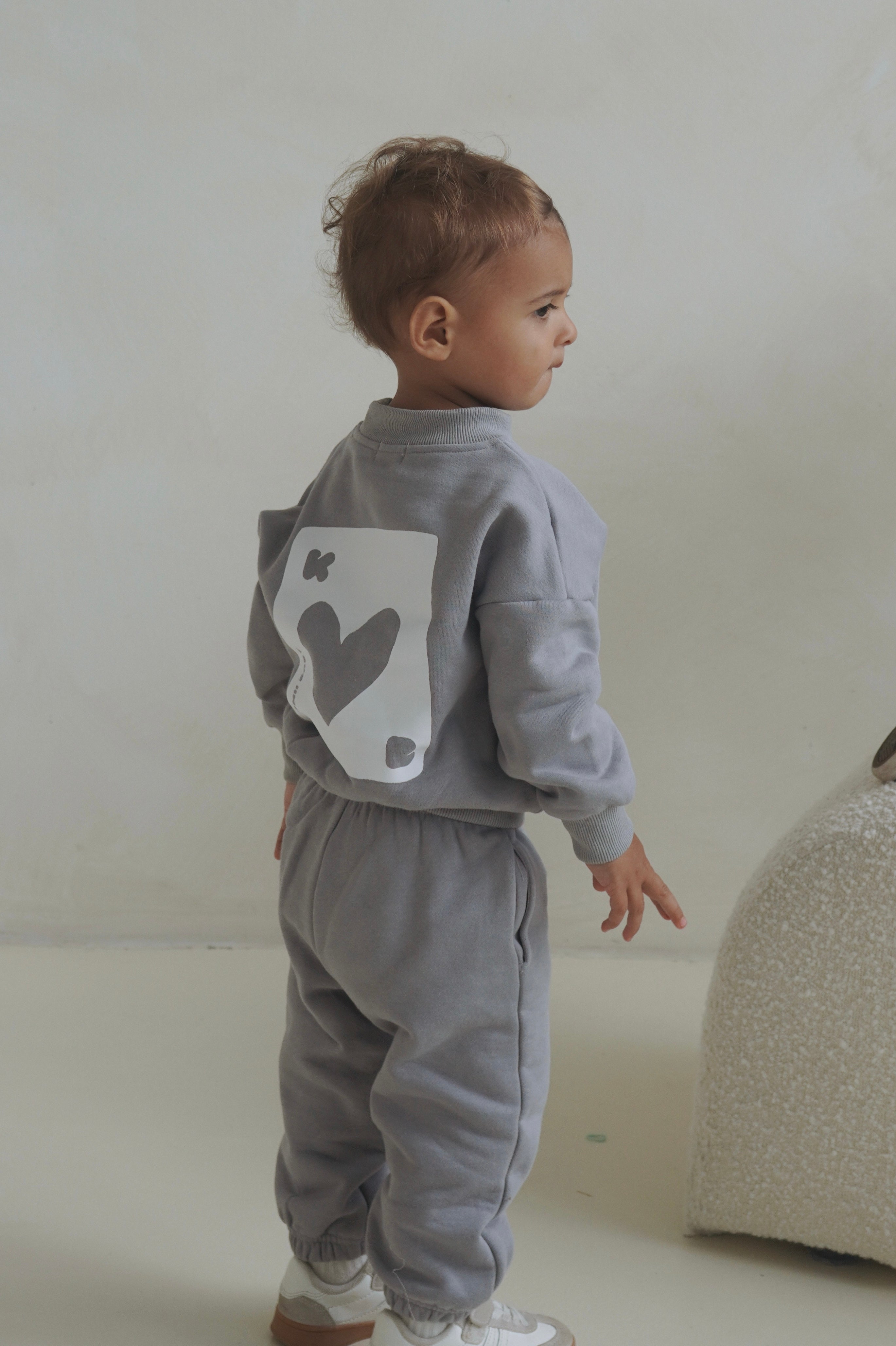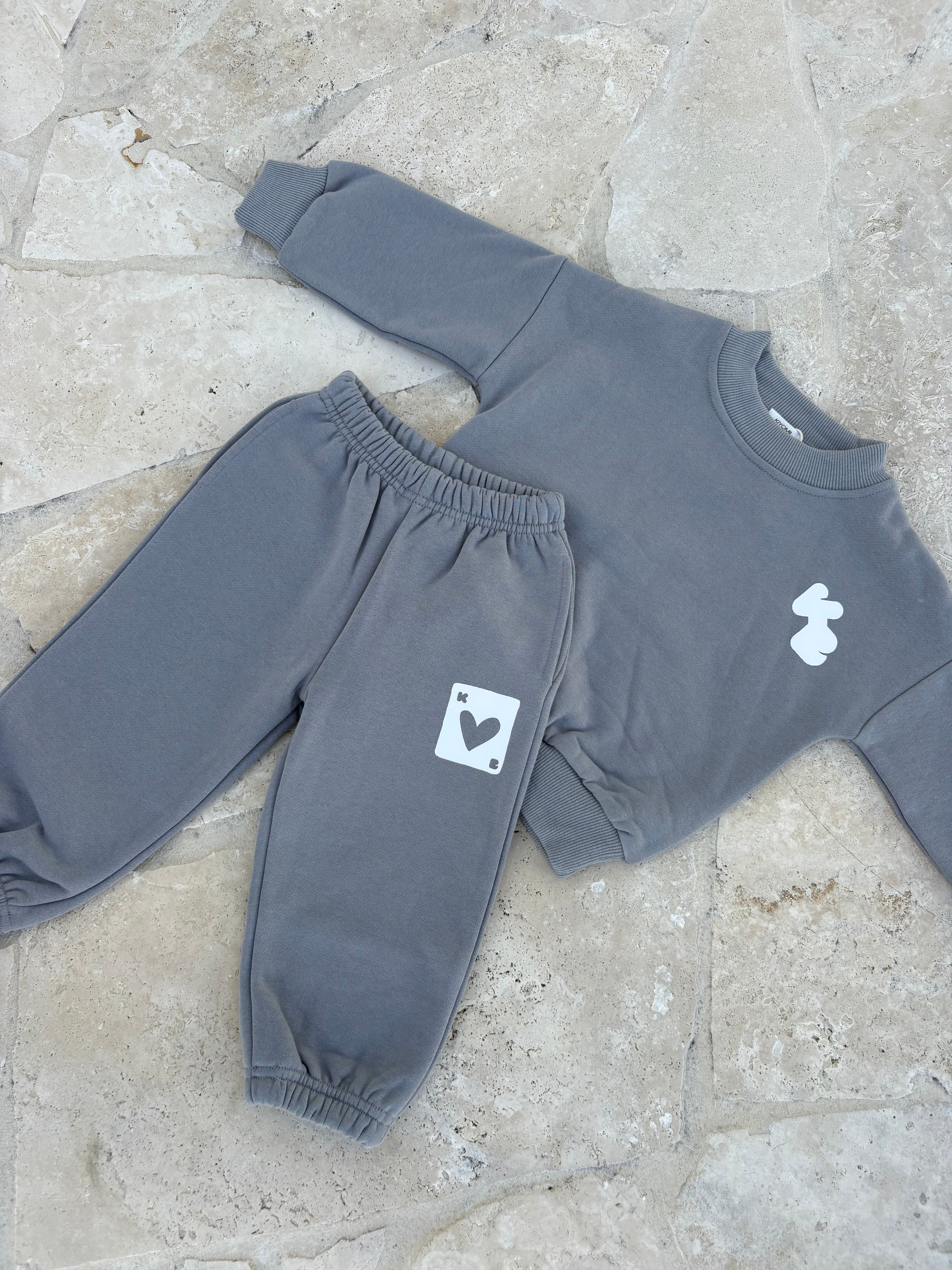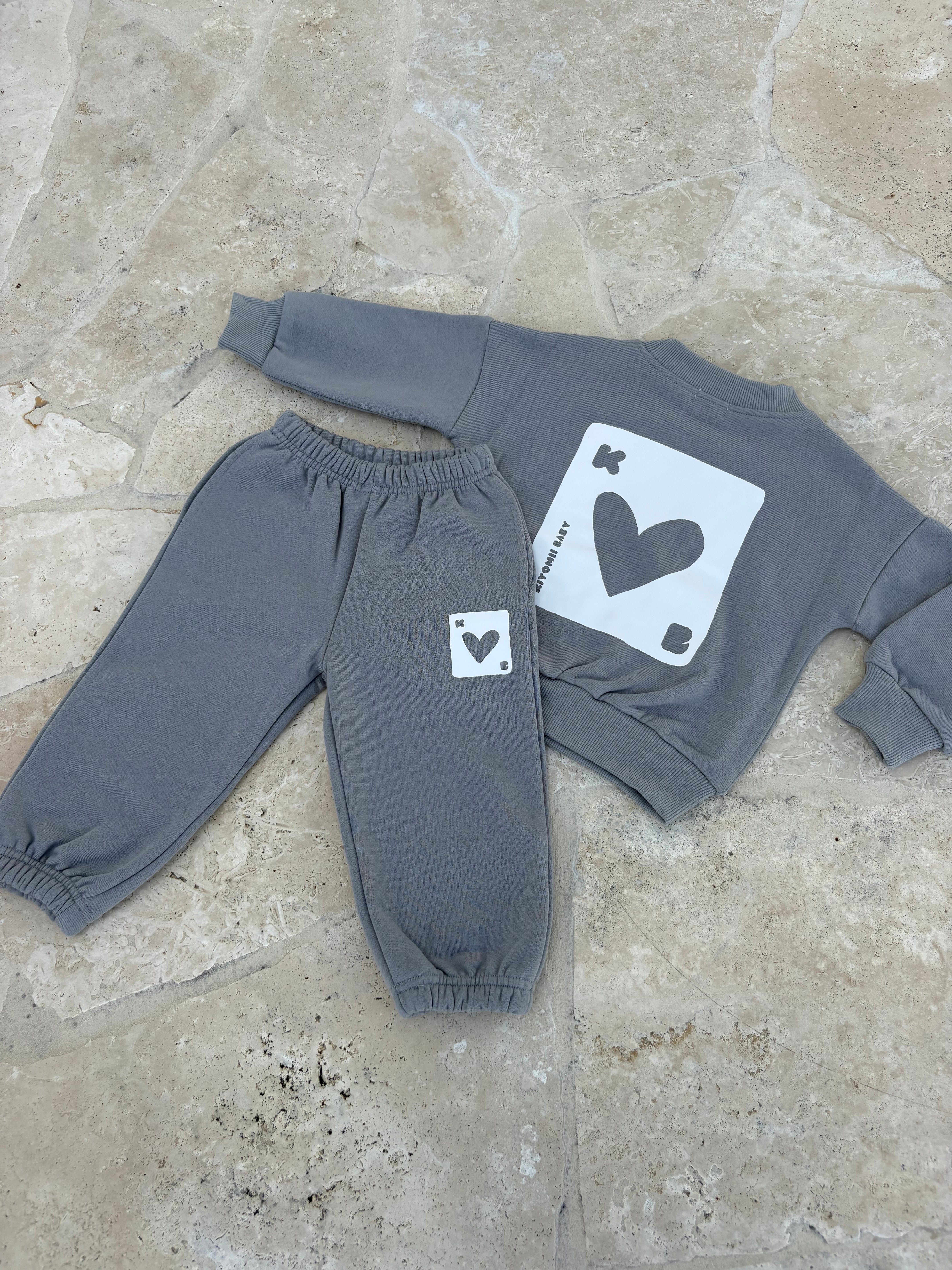 Lover Oversized Tracksuit Set - Light Grey/Navy