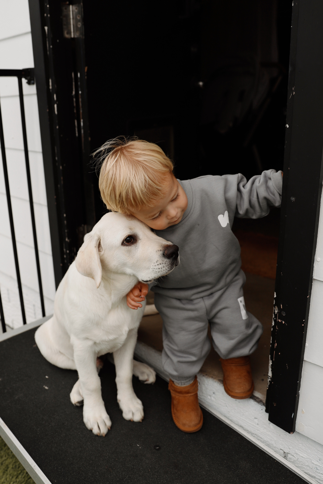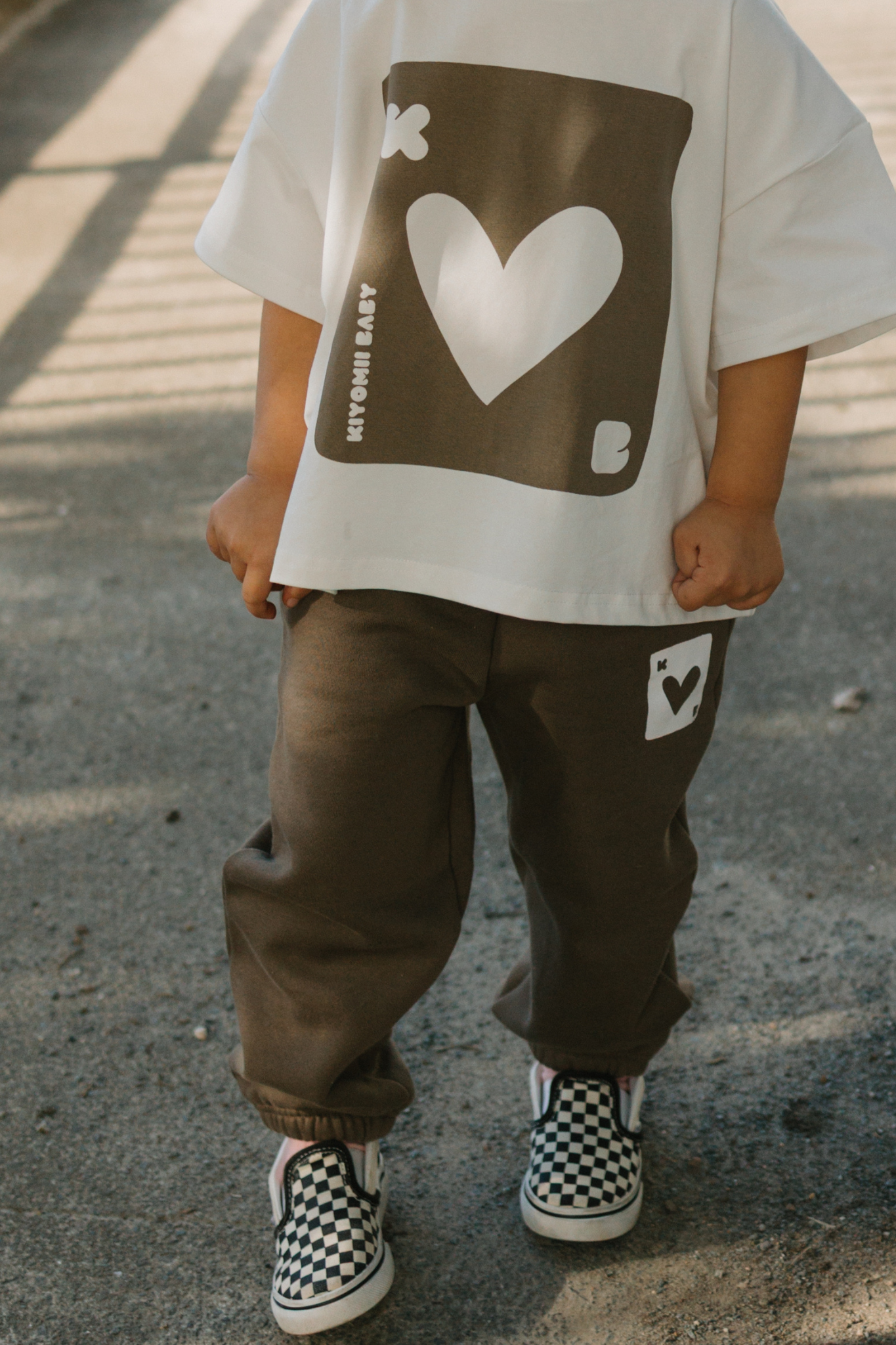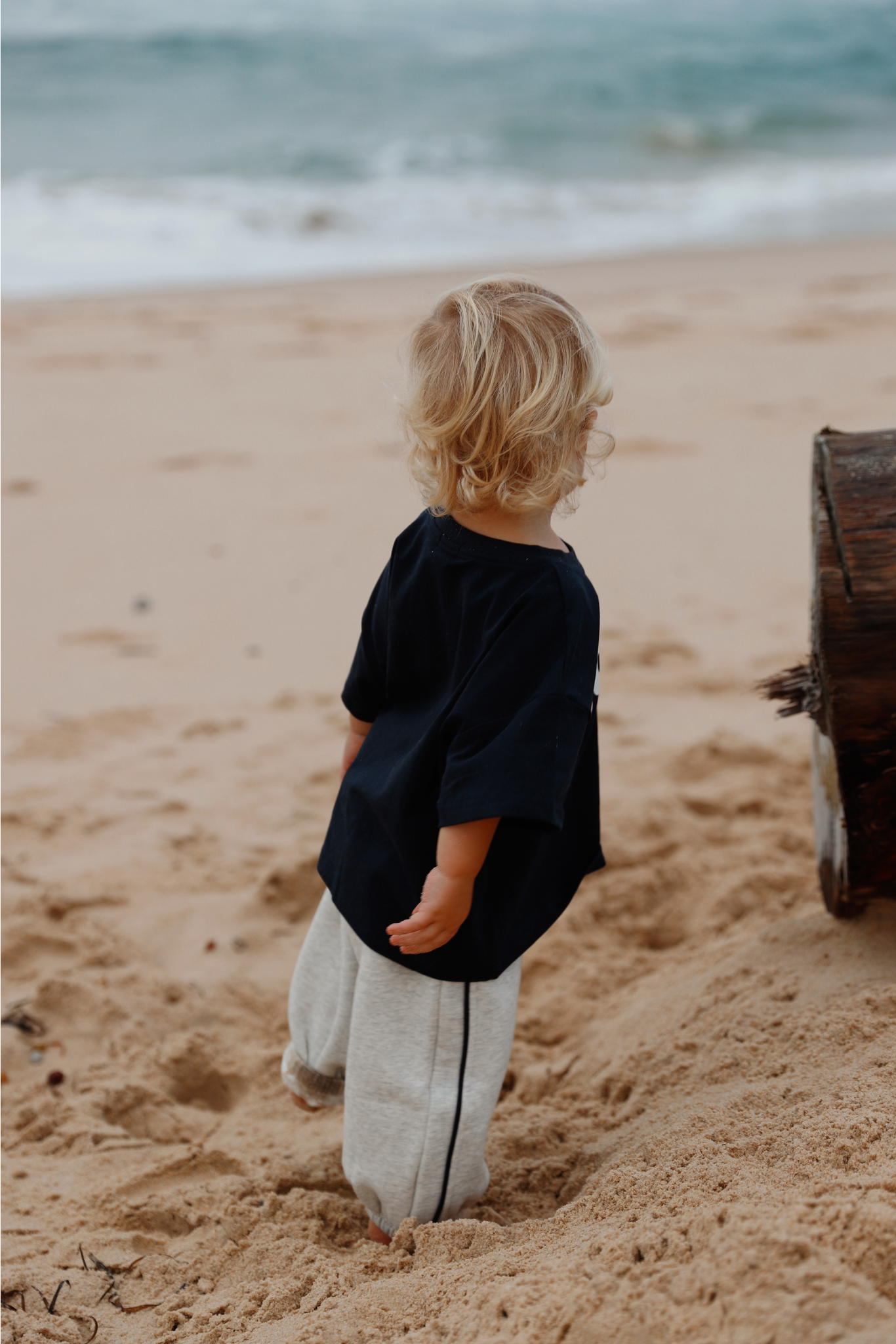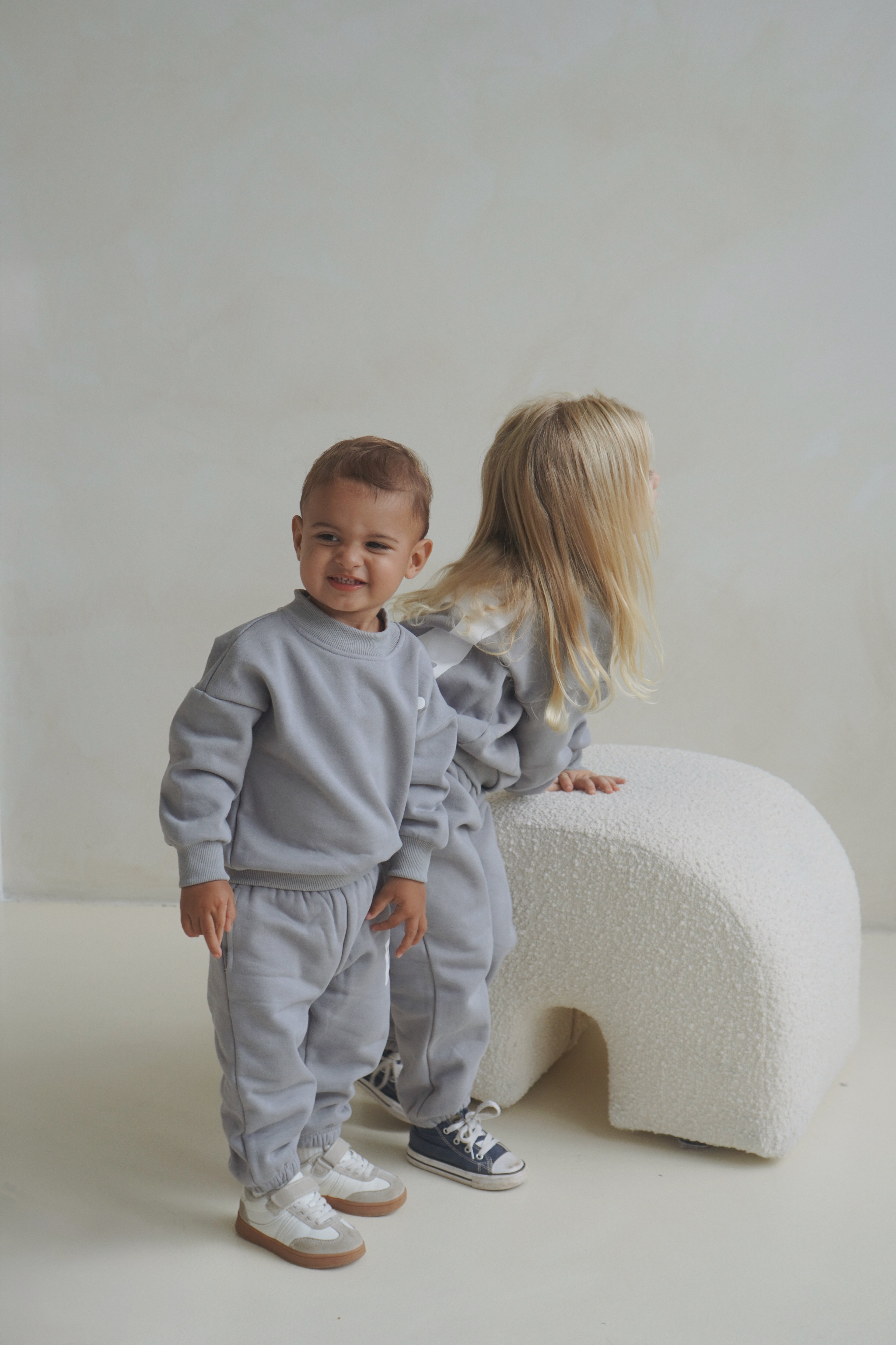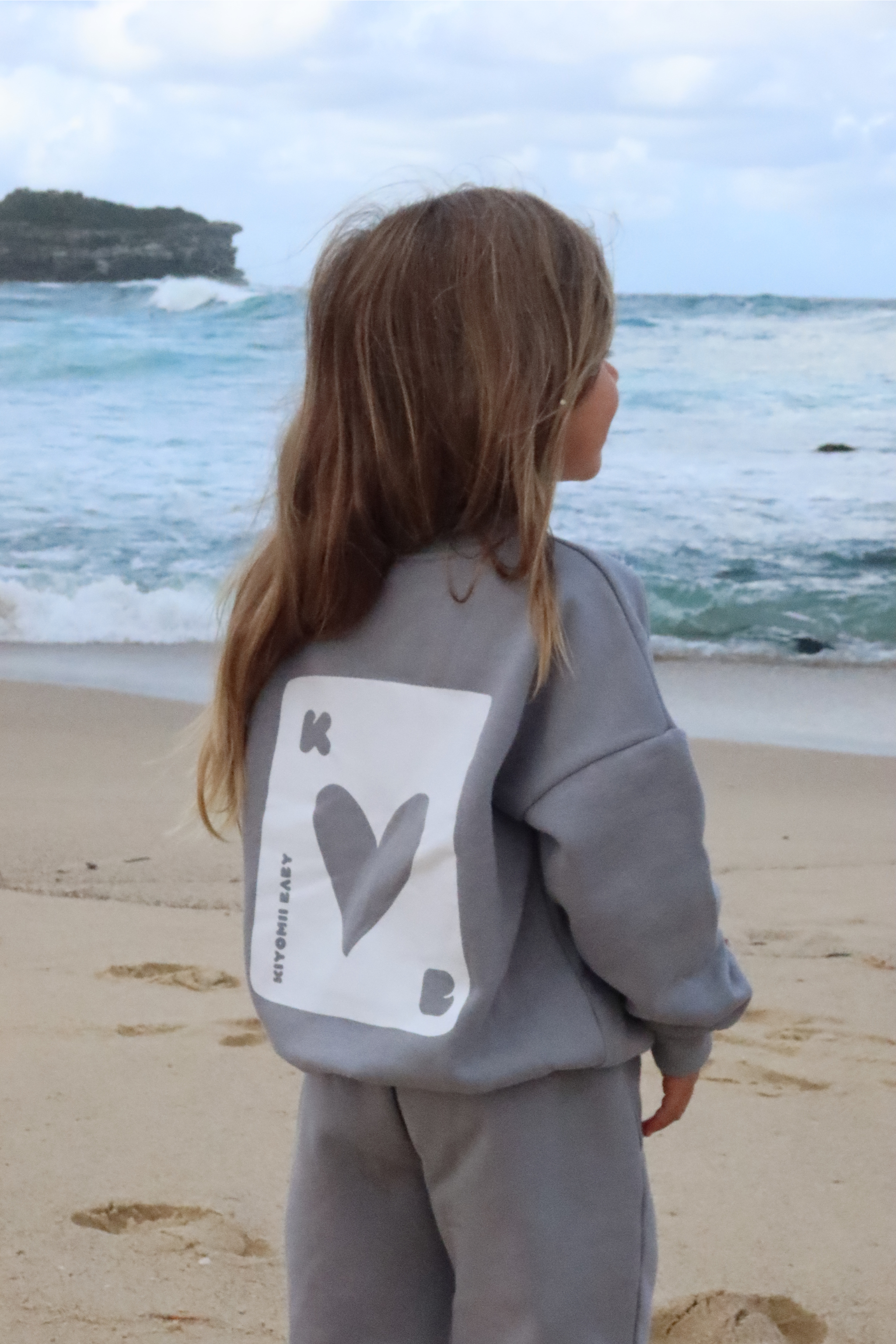 Lover Oversized Tracksuit Set - Light Grey/Navy
