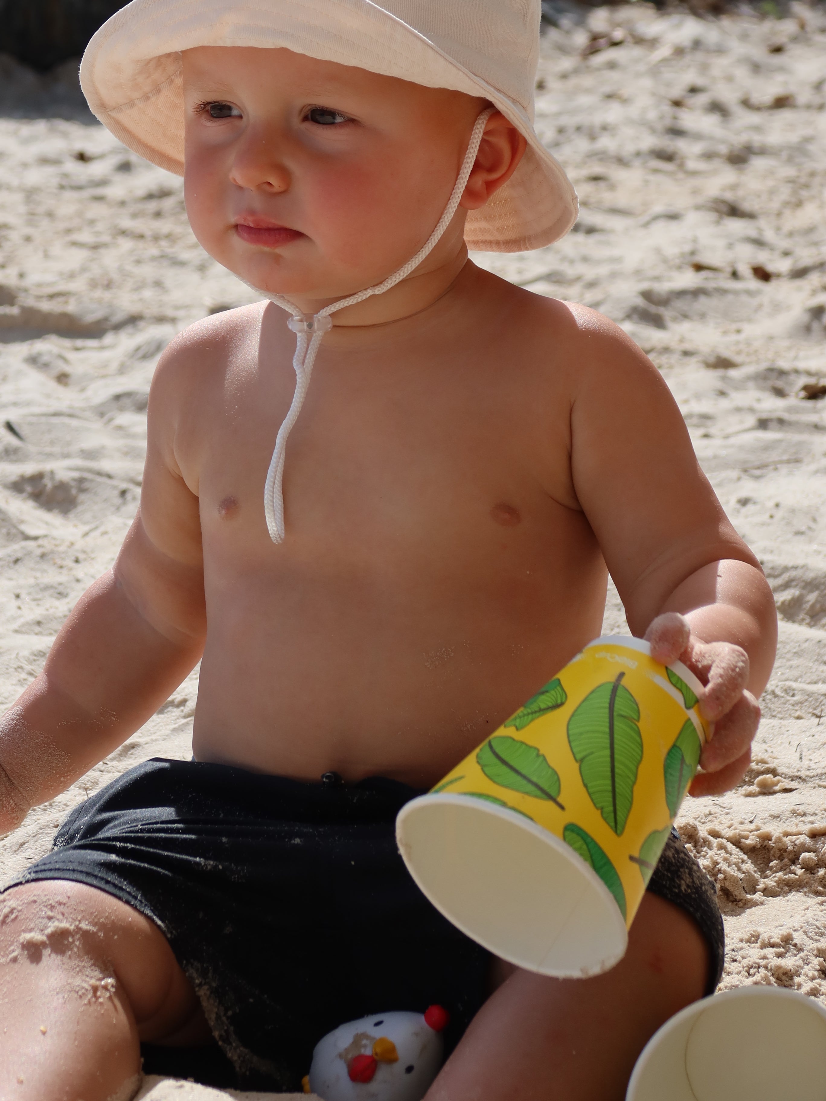 Made in 100% cotton canvas, it features an adjustable drawstring chin strap to ensure it stays on and your little one stays protected from the sun.