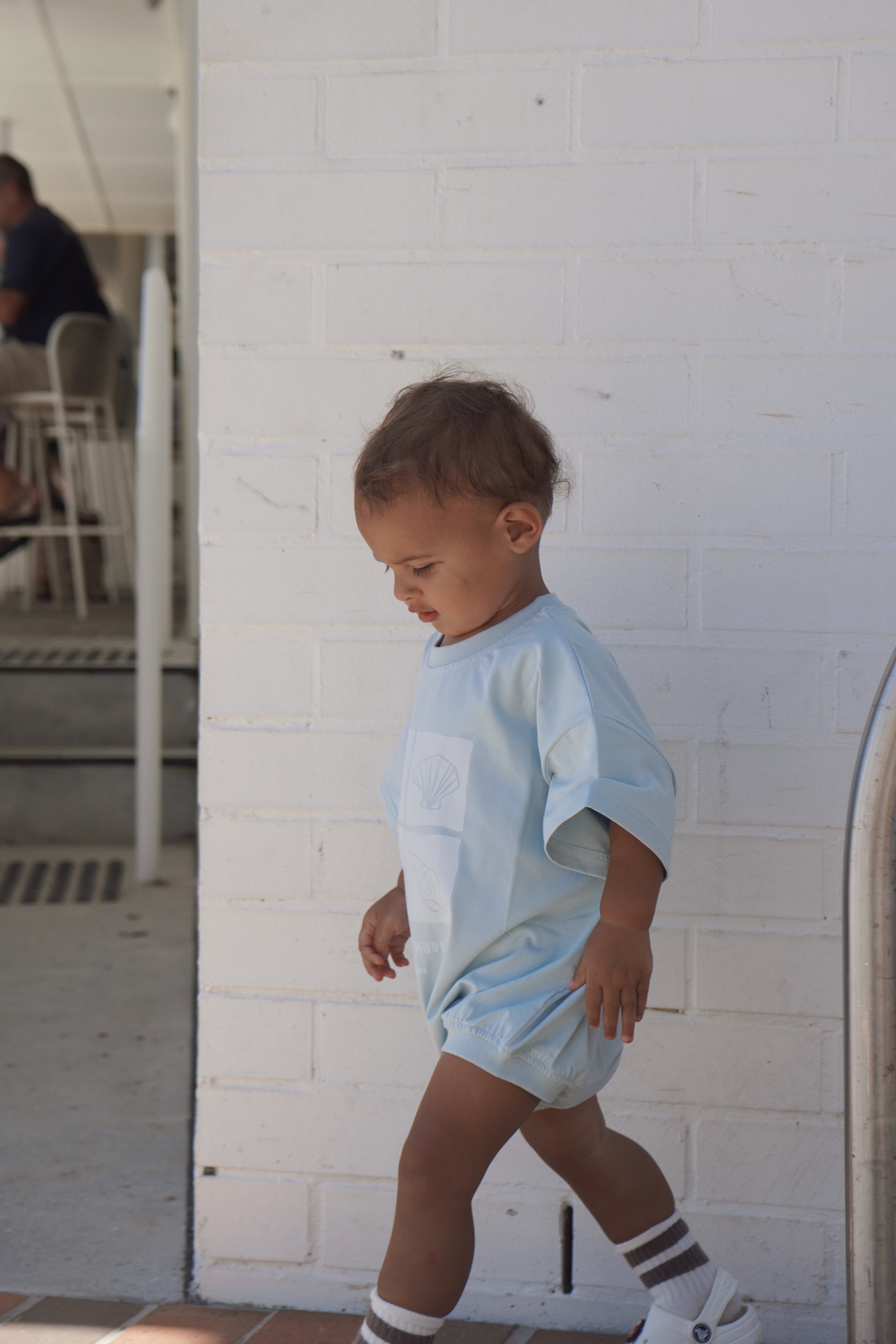 Transport to days playing in the sand and sea with our Coastal Shell Romper. Featuring an oversized fit and designed in soft, breathable cotton to keep your little one cute and comfortable all day long.