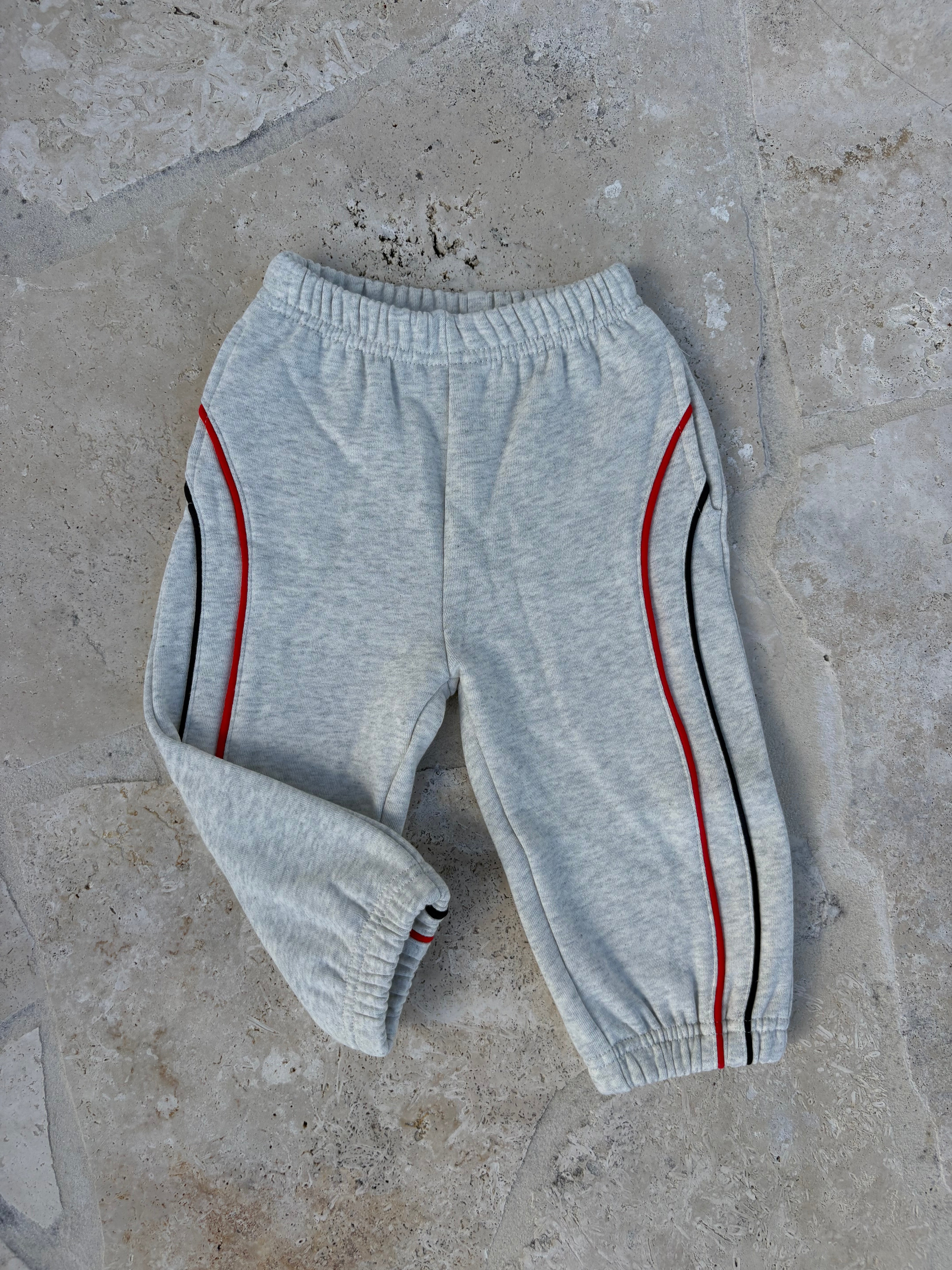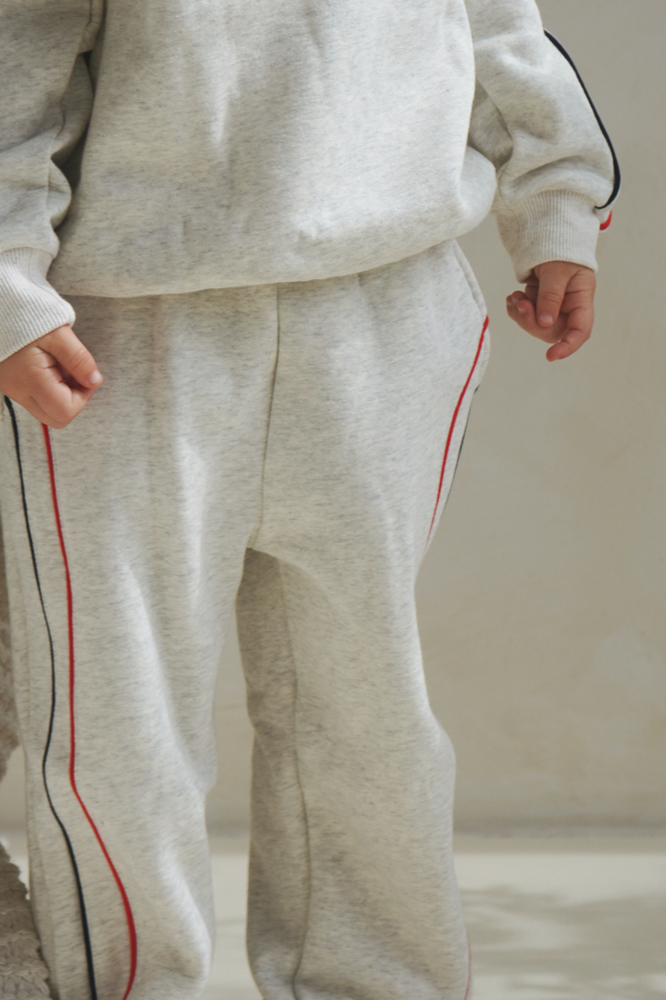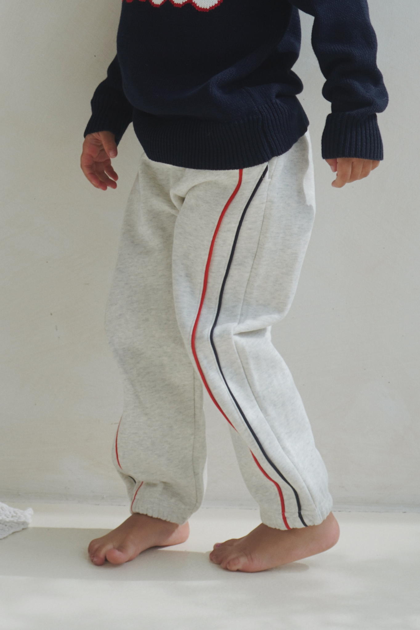 Featuring double striped piping down the side of the leg. The pull on style elastic waist and ankle cuffs makes getting dressed easy.