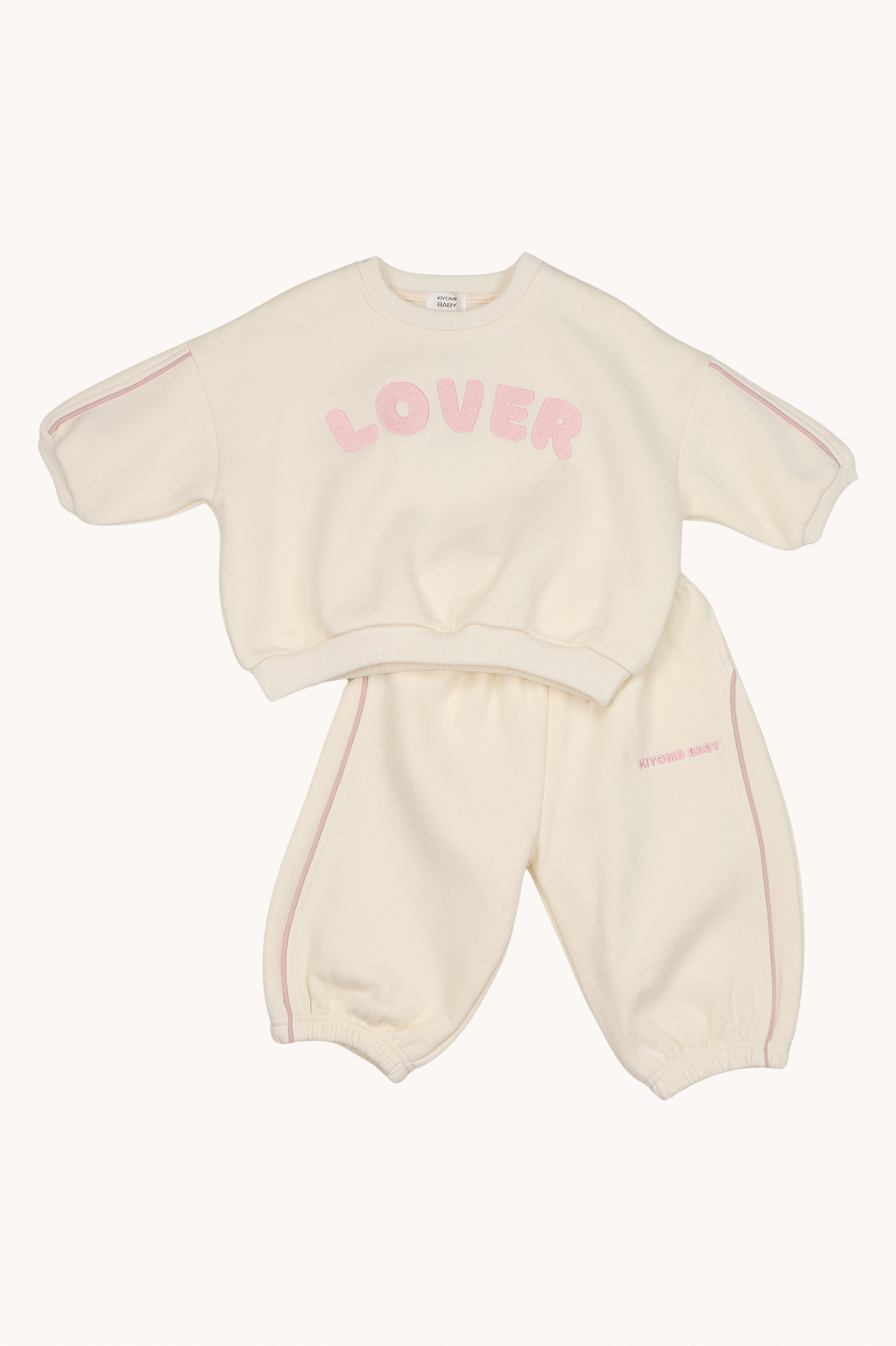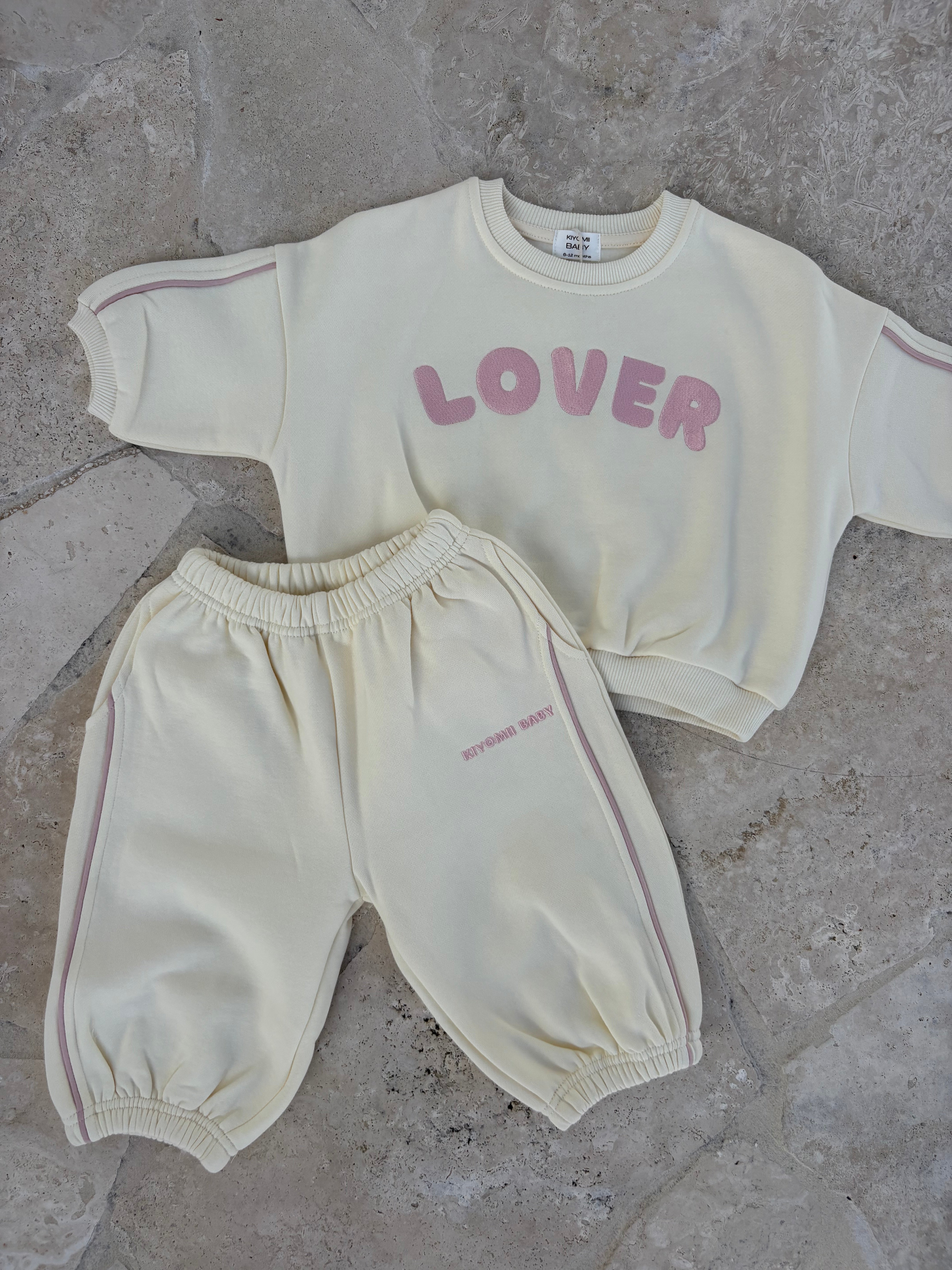 Lover Oversized Tracksuit Set - Cream/Pink