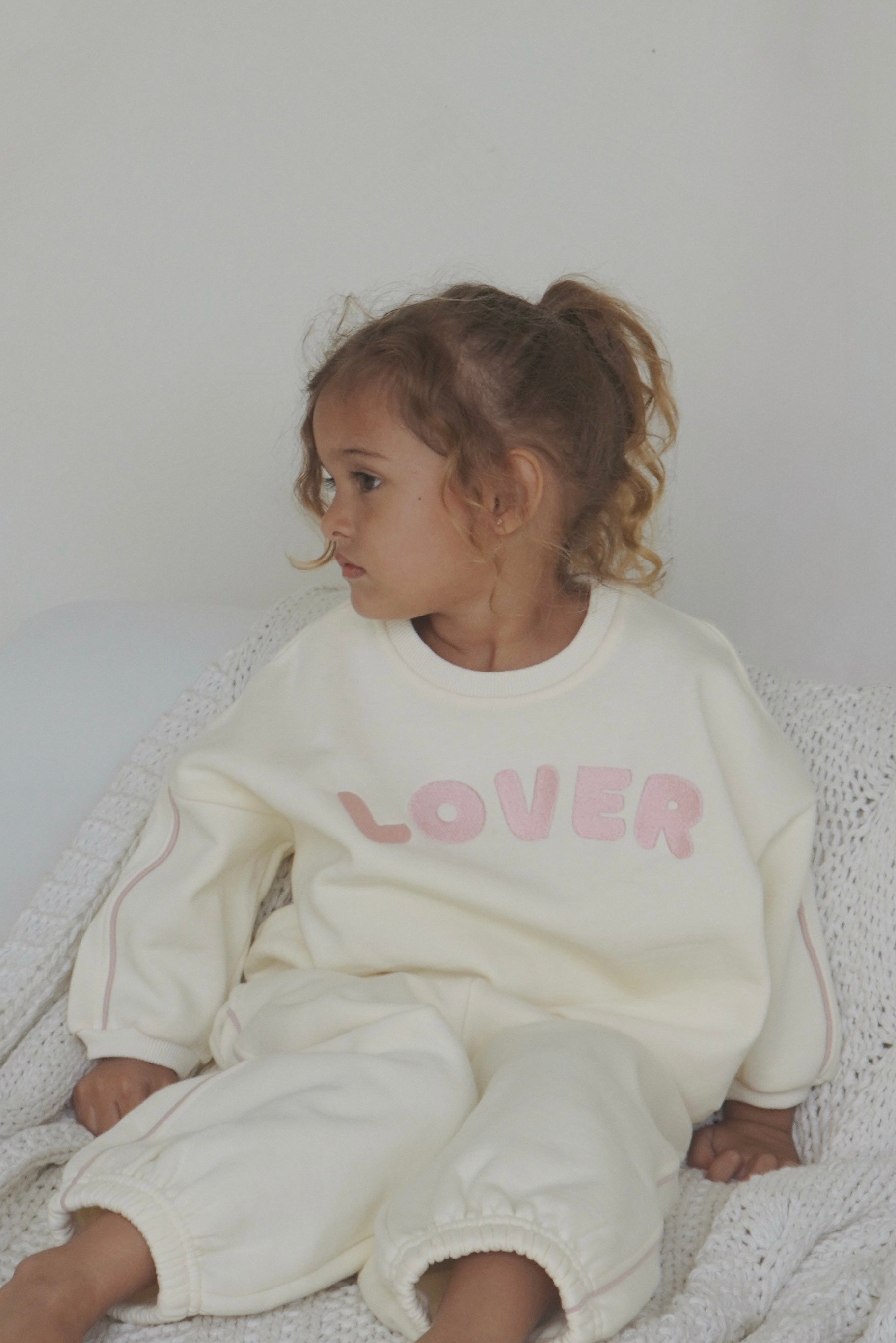 Take your child's tracksuit game to the next level! Our Lover Tracksuit Set features an oversized jumper and track pants designed in premium fleece.