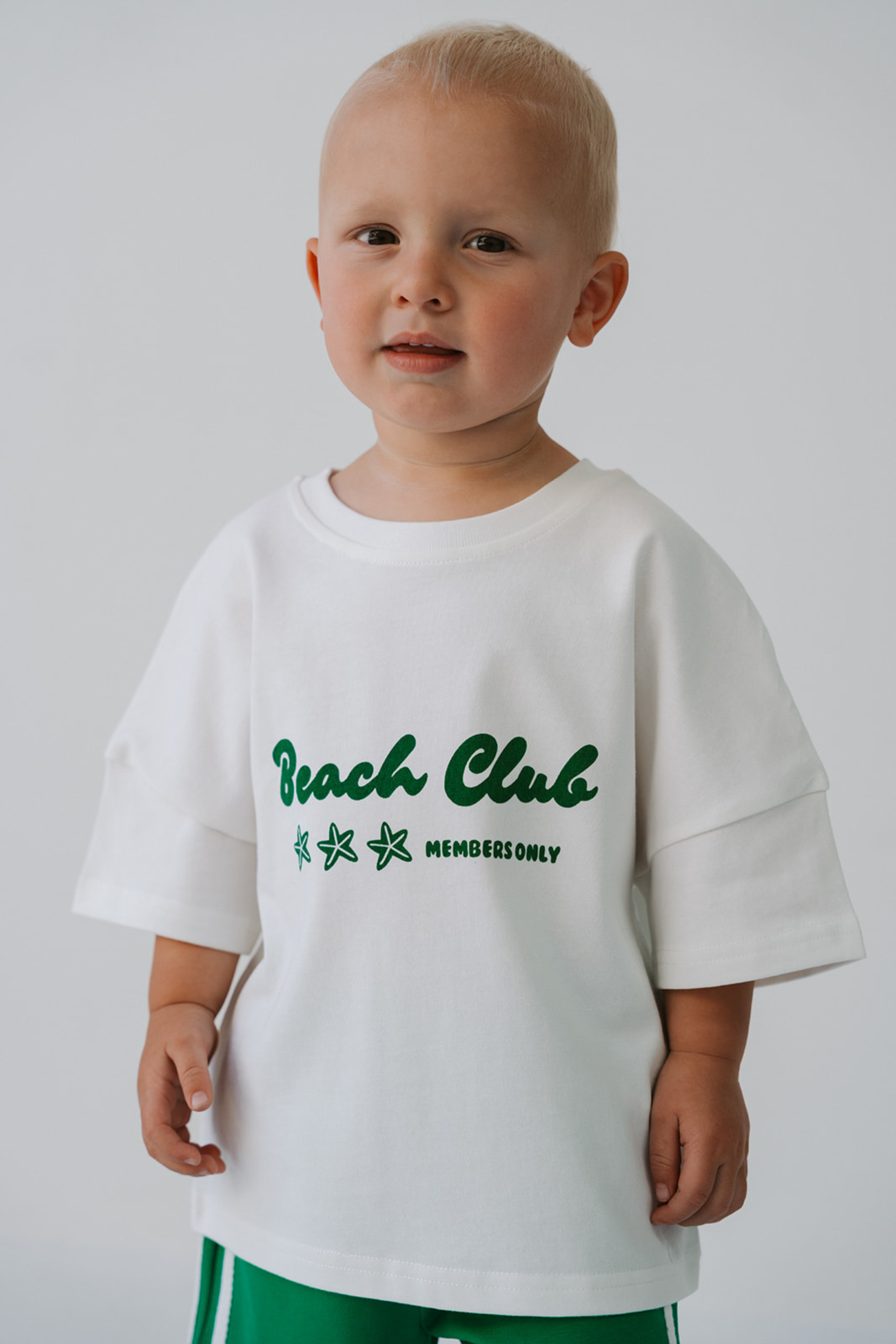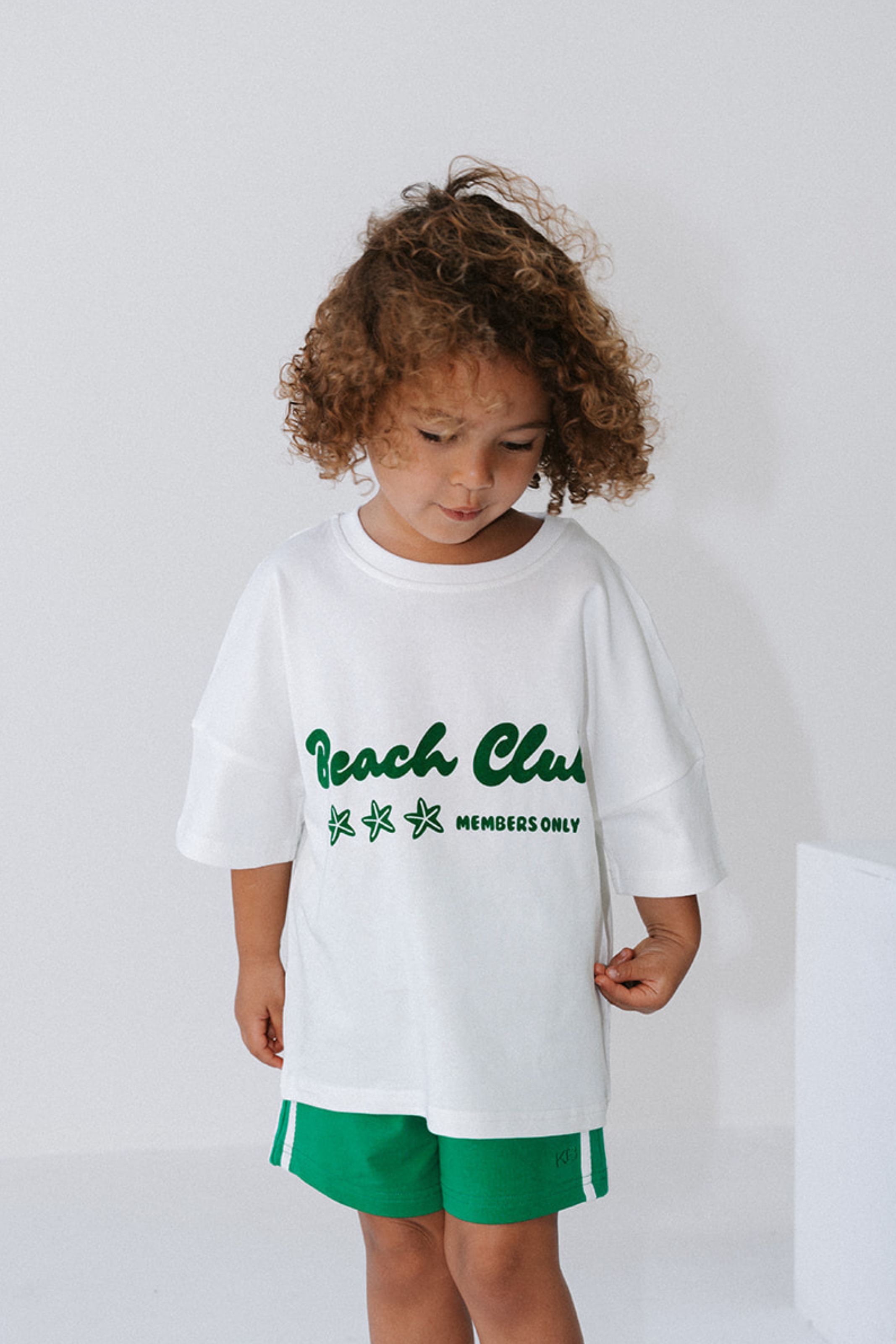 Our Beach Club Tee is designed with a relaxed drop-shoulder cut and oversized fit for ultimate comfort and style.